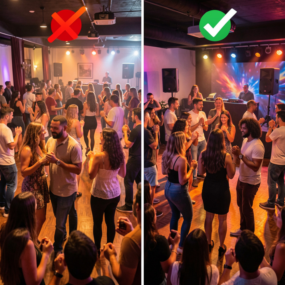 Buscar un social donde el nivel sea acorde al tuyo ayuda a que puedas participar sin frustración. Un entorno equilibrado te permite aprender, practicar y sentirte más seguro al bailar.