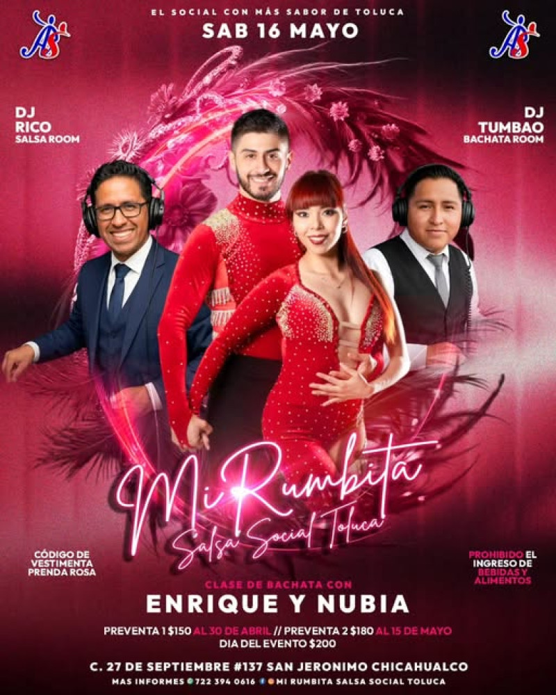 Social de salsa con bachata y cumbia en Toluca con DJs invitados y clase incluida.