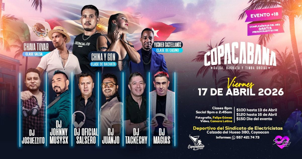 Copacabana Salsa Bachata Social por WhatsApp. https://wa.me/message/KMHLK3VA7Y4BC1